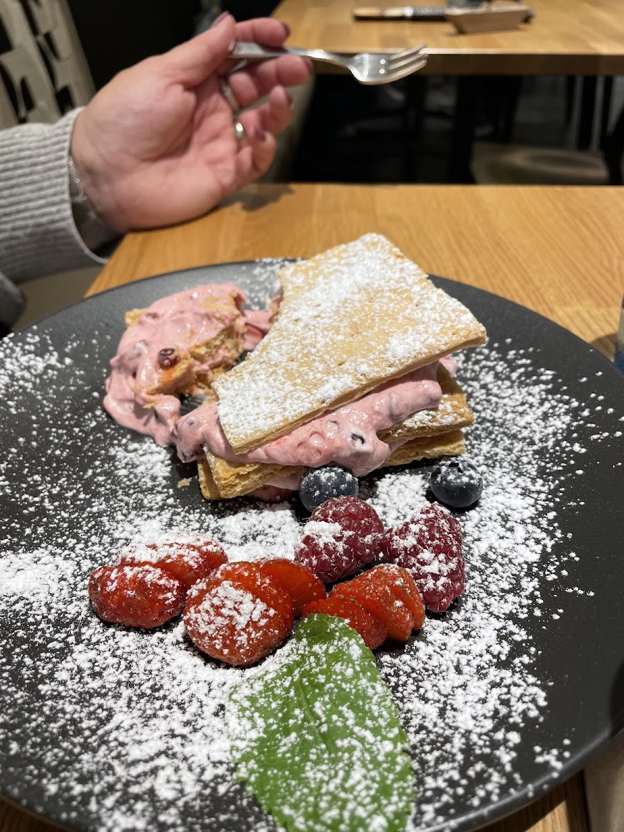 Super duper nice strudel with vanilla ice cream. The staff was very attentive and nice. Coffee strong and properly served, low music on the speaker, that's some Friday afternoon!